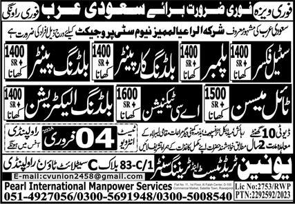 Union Trade Test and Training Center invites applications for job positions advertised in daily Express dated 3 February 2024 for following vacancies in Riyadh, makkah Saudi Arabia.