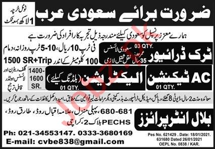 Vacancies in Bilal Enterprises Overseas Advertisement January 2021