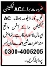 Vacant posts including ac technician are announced in Private Company Lahore, lahore Punjab Pakistan as per 23 October 2022 advertisement in daily Jang Newspaper. Persons with Matric and DAE etc. education can apply.