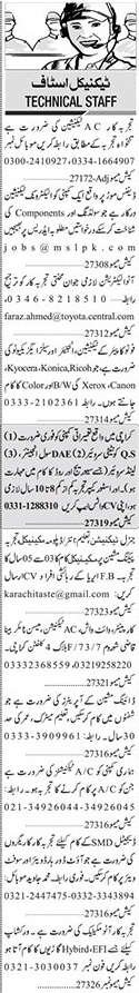 Private Company Jhang, jhang Punjab Pakistan invites applications from eligible candidates for the post of ac technician, auto electrician and electronics technician as per advertisement of August 21, 2023 published in daily Jang Newspaper. Matric, Intermediate, Master and Bachelor etc. educational qualification will be preferred.