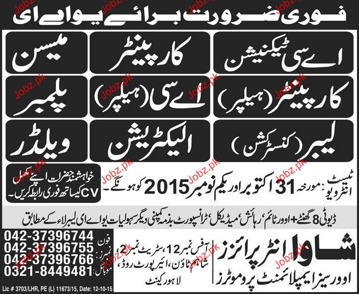 AC Technicians, Carpenters, Mason, AC Helpers Wanted