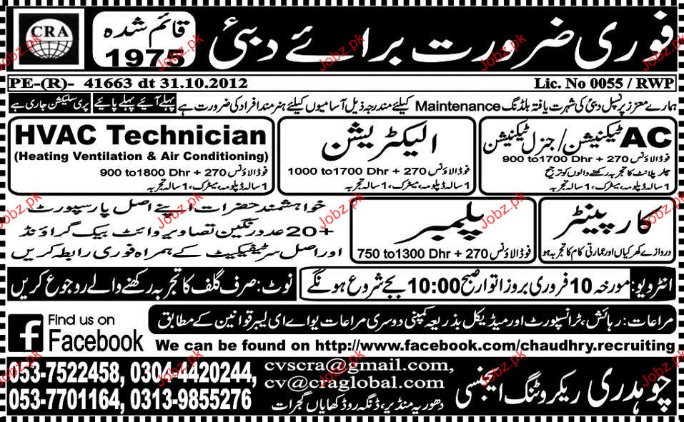 AC Technicians, Electricians, Carpenters Job Opportunity