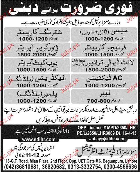 AC Technicians, Electricians, Labors, Plumbers Wanted