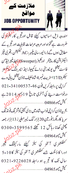 Apply as per details in job advertisement. Login to view further details of how to apply via https://www.jobz.pk online.