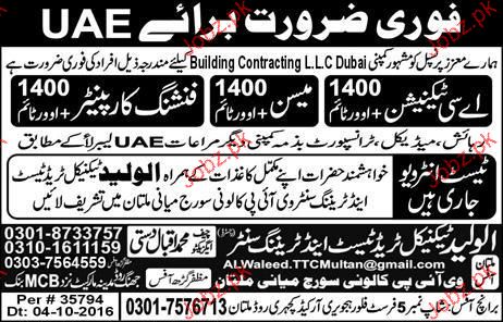 Ac Technicians, Mason, Finishing Carpenters Job Opportunity