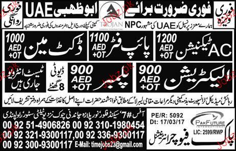 AC Technicians, Pipe Fitters, Electricians Job Opportunity