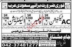 AC Technicians, Plumbers and Electricians Job Opportunity