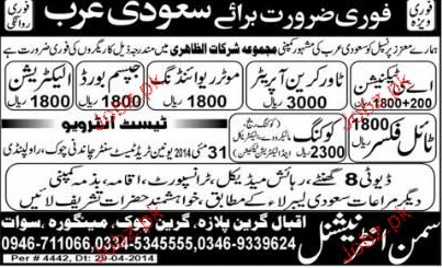 AC Technicians, Tower Crane Operators, Tile Fixer Wanted
