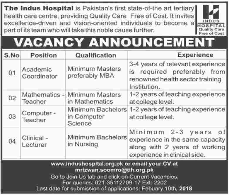 Academic Coordinator Jobs In Indus Hospital IHN