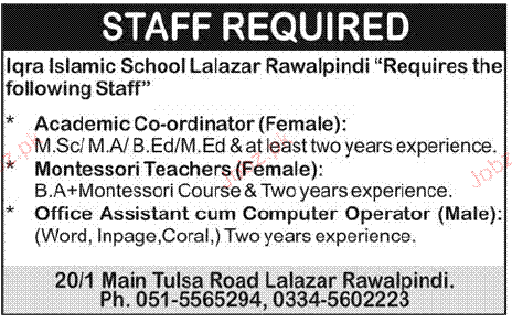 Latest Private Company Teaching Posts Rawalpindi 2025