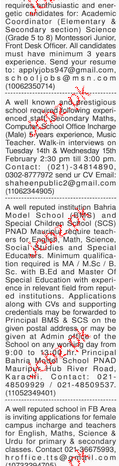 Apply as per details in job advertisement. Login to view further details of how to apply via https://www.jobz.pk online.
