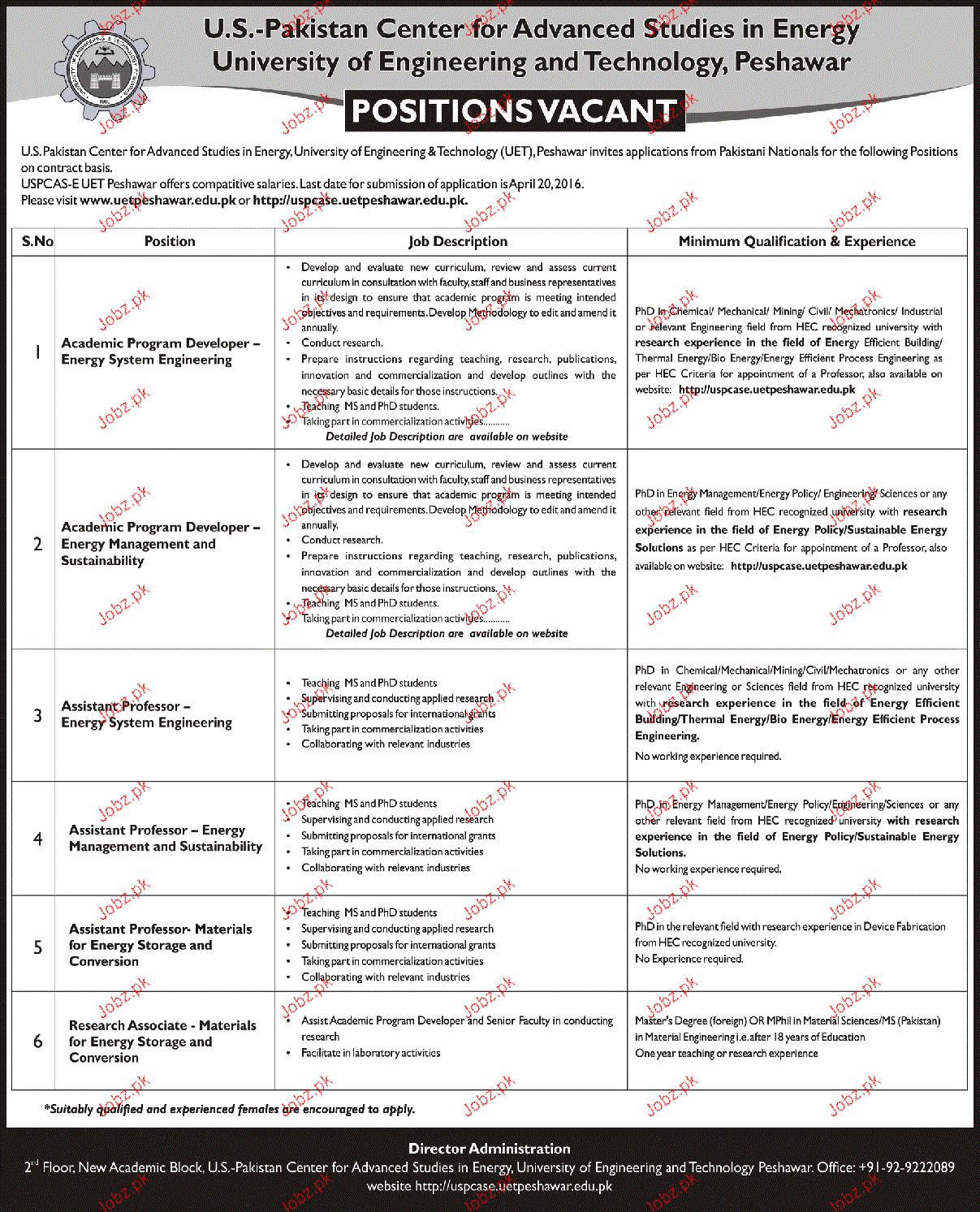 Apply as per details in job advertisement. Login to view further details of how to apply via https://www.jobz.pk online.