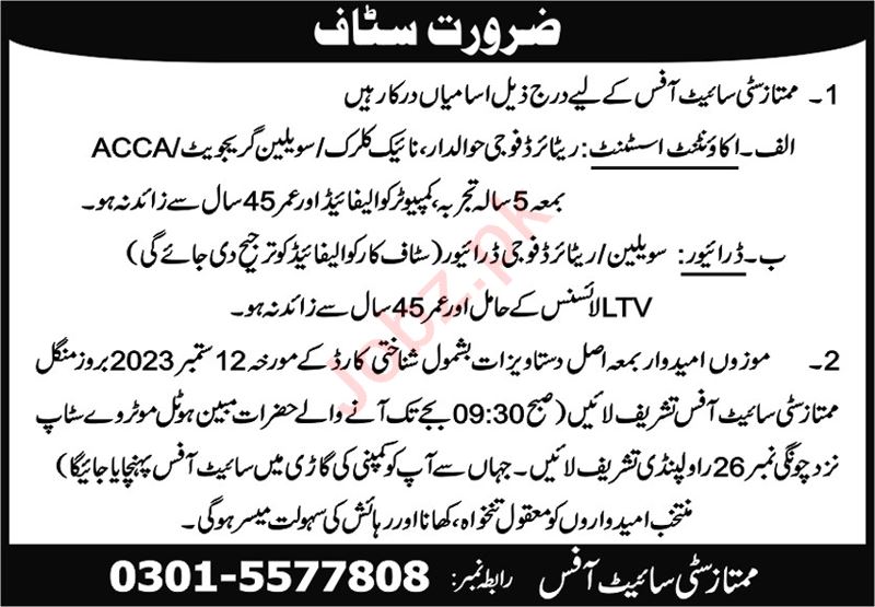 Mumtaz City is looking for candidates for following posts as per job advertisement published in daily Nawaiwaqt Newspaper of August 27, 2023 for location Lahore, lahore Punjab Pakistan: