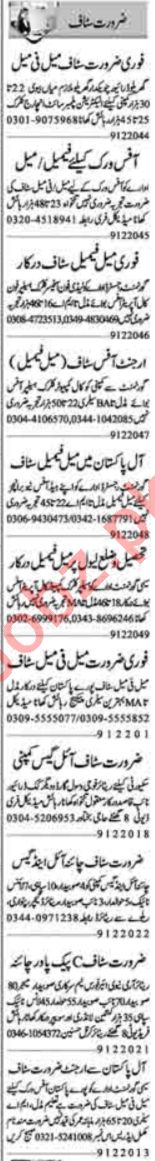 Apply as per details in job advertisement. Login to view further details of how to apply via https://www.jobz.pk online.