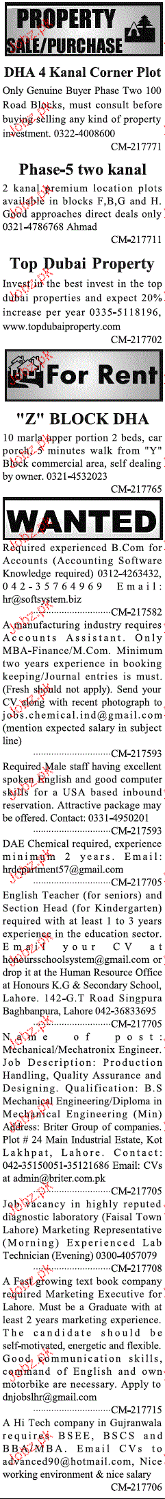 Todays New Jobs in Lahore