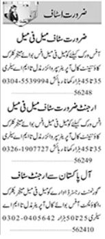 Apply as per details in job advertisement. Login to view further details of how to apply via https://www.jobz.pk online.