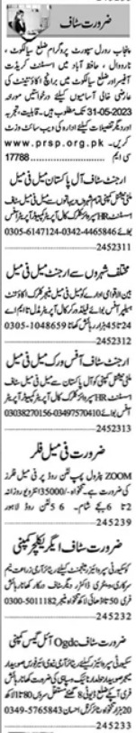 Private jobs advertisement dated about 24 May 2023 in daily Dunya Newspaper invites application for the vacant post of retired naik, female filler, hr supervisor, call operator, office boy, accountant, helper, manager, assistant, security supervisor, retired subedar, assistant credit officer, field worker, computer operator, clerk, retired havaldar, retired subedar major, male female staff and retired sepoy in Lahore, lahore Punjab Pakistan. Preferred Education is Intermediate, Matric, Master, Middle and Bachelor etc.