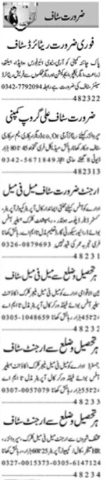 Vacant posts including security guard, office boy, computer operator, driver, customer dealer, retired navy staff, helper, call operator, hr manager, accountant, receptionist, retired government staff, retired army staff, clerk, retired air force staff, supervisor and field worker are announced in Private Multan, multan Punjab Pakistan as per 4 August 2023 advertisement in daily Dunya Newspaper. Educational qualifications required Matric, Bachelor, Middle, Intermediate and Master etc.