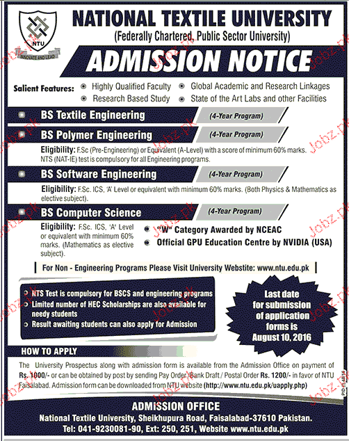 Apply as per details in job advertisement. Login to view further details of how to apply via https://www.jobz.pk online.