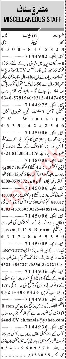 Private Company invites applications for job positions advertised in daily Jang dated 23 April 2024 for following vacancies in Lahore, lahore Punjab Pakistan.
