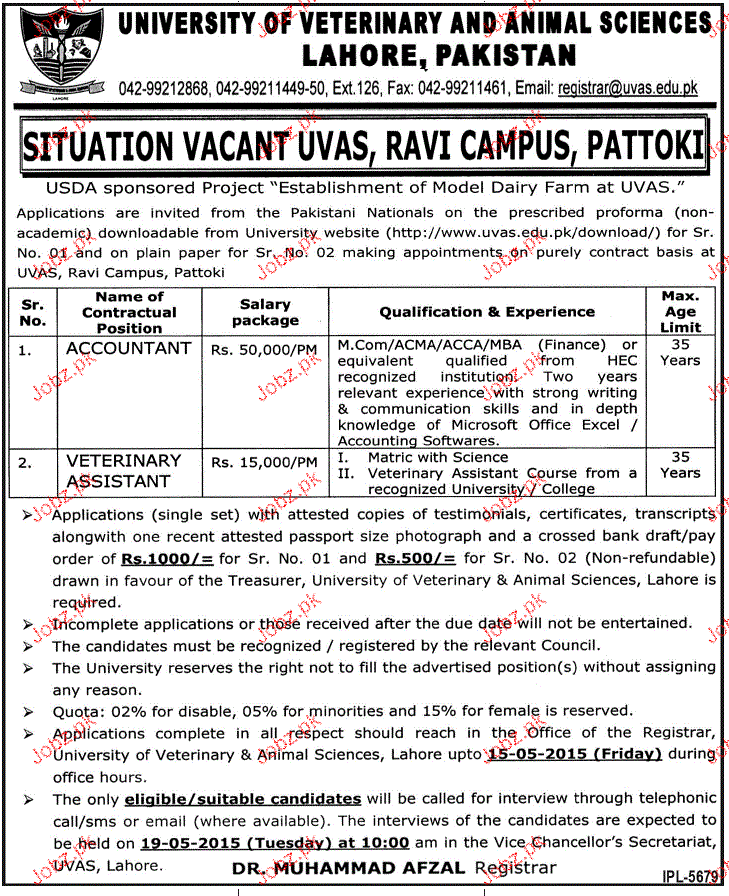 Apply as per details in job advertisement. Login to view further details of how to apply via https://www.jobz.pk online.