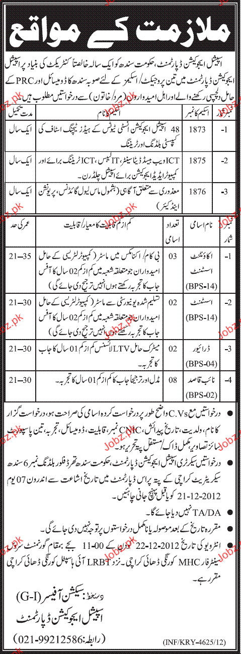 Latest Government Admin Clerical Posts Karachi 2025