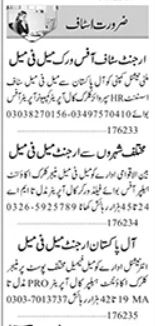 Private Company is looking for candidates for following posts as per job advertisement published in daily Dunya Newspaper of June 17, 2023 for location Karachi, karachi Sindh Pakistan: