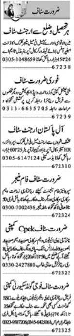 Educational qualifications required Matric, Bachelor, Middle, Intermediate, B.com, I.com and BA etc.