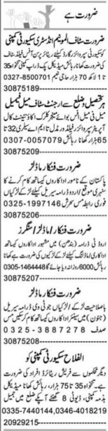 Private Company latest Classifieds Admin Clerical jobs and others can be applied till April 28, 2024 or as per closing date in newspaper ad. Read complete ad online to know how to apply on latest Private Company job opportunities. Accounting, Security and Finance skills may beneficial for these Private Company jobs. Facilities like accommodation, medical and food may be provided.