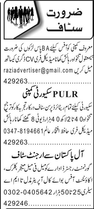Private Company is looking for candidates for following posts as per job advertisement published in daily Roznama 92 News Newspaper of August 7, 2024 for location Lahore, lahore Punjab Pakistan: