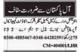 Private Company invites applications for job positions advertised in daily Nawaiwaqt dated 8 May 2025 for following vacancies in Islamabad, islamabad Islamabad Pakistan.
