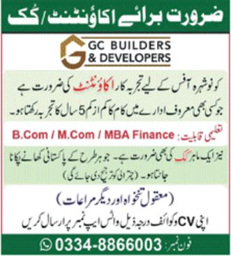 Accountant & Cook Jobs In GC Builders & Developer