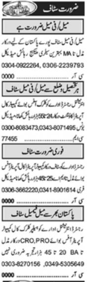Vacant posts including helper, customer relationship officer, cro, office staff, call operator, pro, public relation officer, computer operator, office boy, accountant, call computer operator, clerk and computer call operator are announced in Private Company Lahore, lahore Punjab Pakistan as per 24 June 2022 advertisement in daily Khabrain Newspaper. Bachelor, Intermediate, Matric and Middle etc. educational qualification will be preferred.