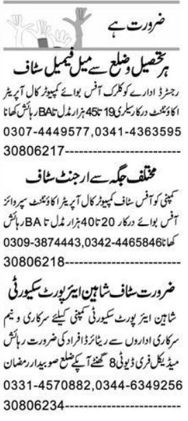 Matric, Bachelor, Intermediate and Middle etc. educational qualification will be preferred.