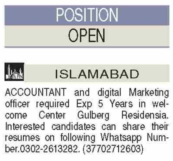 Private Company invites applications for job positions advertised in daily Dawn dated 21 July 2022 for following vacancies in Islamabad, islamabad Islamabad Pakistan.