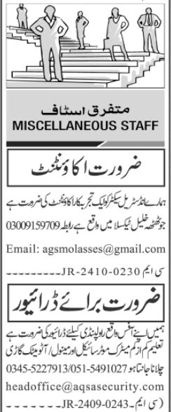 Accountant & Driver Jobs 2024 In Rawalpindi