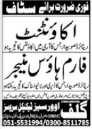 Gulf Overseas Technical Services Rawalpindi, rawalpindi Punjab Pakistan invites applications from eligible candidates for the post of farm house manager and accountant as per advertisement of October 29, 2023 published in daily Jang Newspaper. Preferred Education is Master and Bachelor etc.