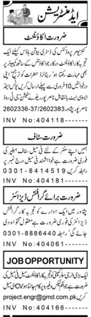 Accountant & Graphic Designer Jobs 2022 in Peshawar