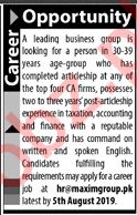 Apply as per details in job advertisement. Login to view further details of how to apply via https://www.jobz.pk online.