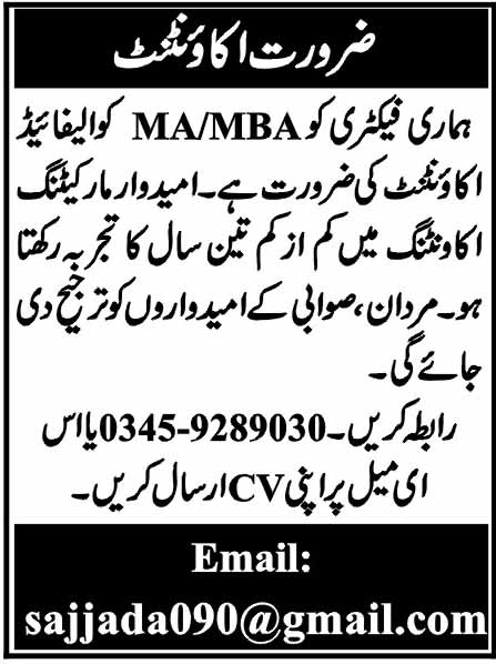 Accountant Job In Private Factory
