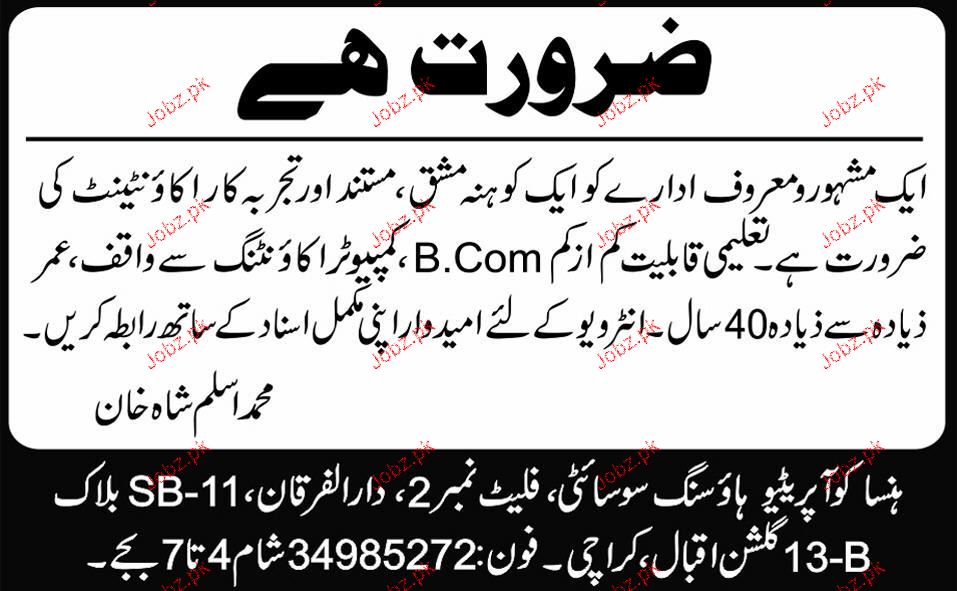 Apply as per details in job advertisement. Login to view further details of how to apply via https://www.jobz.pk online.