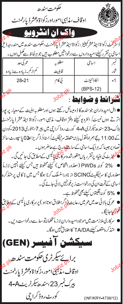 Apply as per details in job advertisement. Login to view further details of how to apply via https://www.jobz.pk online.