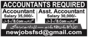 Private Company jobs advertisement dated about 19 June 2022 in daily Jang Newspaper invites application for the vacant post of assistant accountant and accountant in Faisalabad, faisalabad Punjab Pakistan. B.com etc. educational qualification will be preferred.