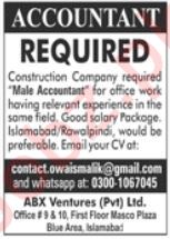ABX Ventures Private Limited Islamabad, islamabad Islamabad Pakistan invites applications from eligible candidates for the post of accountant as per advertisement of July 24, 2022 published in daily Jang Newspaper. Educational qualifications required B.com and M.com etc.
