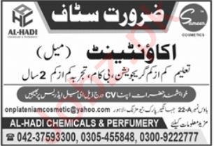 Vacant posts including accountant are announced in Al Hadi Chemicals & Perfumery Lahore, lahore Punjab Pakistan as per 11 September 2022 advertisement in daily Jang Newspaper. Educational qualifications required B.com etc.