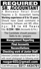 Private Company Karachi, karachi Sindh Pakistan invites applications from eligible candidates for the post of accountant and sr accountant as per advertisement of January 21, 2024 published in daily Jang Newspaper. Preferred Education is B.com and BBA etc.
