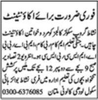 Vacant posts including accountant are announced in Nishat Group of Schools and Colleges Multan, multan Punjab Pakistan as per 2 October 2024 advertisement in daily Dunya Newspaper. Preferred Education is B.com, M.com, M.sc, BBA and MBA etc.
