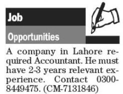 Vacant posts including accountant are announced in Private Company Lahore, lahore Punjab Pakistan as per 18 April 2023 advertisement in daily The News Newspaper. Preferred Education is Bachelor, BBA and B.com etc.
