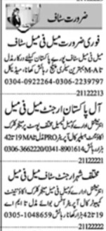 Vacant posts including computer operator, manager, call operator, public relations officer, clerk, pro, female staff, helper, male staff, accountant and office boy are announced in Private Company Lahore, lahore Punjab Pakistan as per 21 December 2022 advertisement in daily Dunya Newspaper. Educational qualifications required Bachelor, Master, Matric, Intermediate and Middle etc.