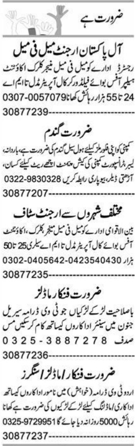 Private Company is looking for candidates for following posts as per job advertisement published in daily Express Newspaper of April 25, 2024 for location Faisalabad, faisalabad Punjab Pakistan:
